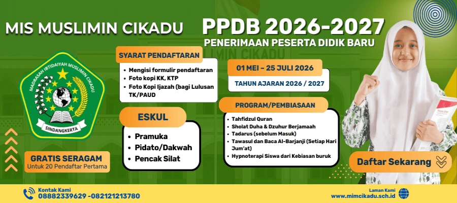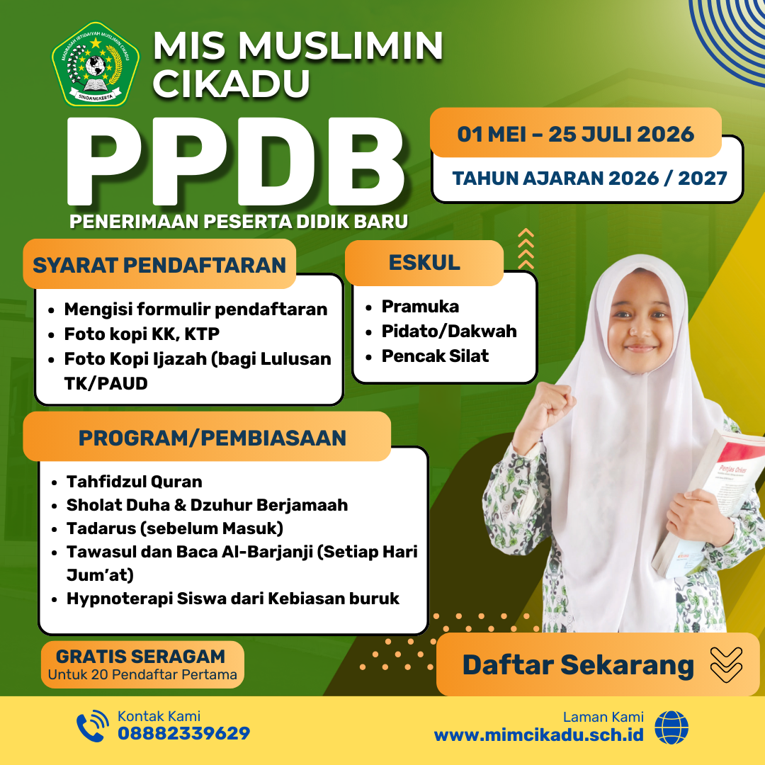 Pelaksanaan Penerimaan Siswa Baru (PSB) Tahun Pelajaran 2026/2027 di Madrasah Ibtidaiyah Muslimin Cikadu...